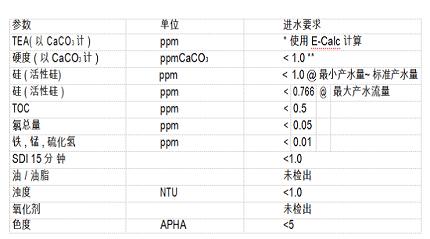 苏伊士(原GE)EDI电去离子使用时,要保证进水水质符合要求,RO进水要求细节如下
