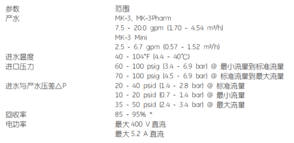 顺流启动时,模块标准流量下的最小系统进水压力为 45 psi (3.1 bar),与 MK-2 及 MK-1 系统相当。
