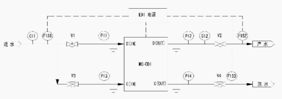 苏伊士EDI工艺在工业超纯水生产中的工艺流程图如下所示: