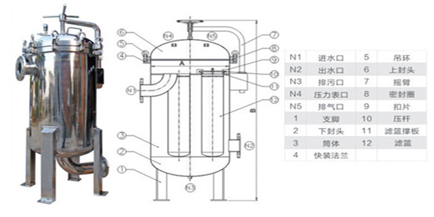 保安过滤器主要由过滤外壳,过滤滤芯等组成,过滤外壳大部分由R304不锈钢材料组成,如用在耐酸碱等特殊场合则可采用R316不锈钢做外壳。可分为法兰式与卡箍式,而法兰式外壳主要用在过滤流量较大的场合。过滤滤壳中间装的过滤滤芯主要以PP过滤棉芯为主,有些场合也可选用线绕滤芯或活性炭滤芯。滤芯的安装数目可从一支到几十支不等,主要是根据处理量的大小来确定。
