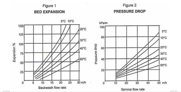 0 1呈现 AMBERLITE IR120Na以逆洗流量及水温为函数的床膨胀特性。