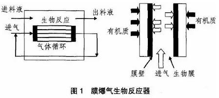 曝气膜--生物反应器(AMBR)最早见于Cote.P 等1988年报道,采用透气性致密膜(如硅橡胶膜)或微孔膜(如疏水性聚合膜),以板式或中空纤维式组件,在保持气体分压低于泡点( Bubble Point)情况下,可实现向生物反应器的无泡曝气。该工艺的特点是提高了接触时间和传氧效率,有利于曝气工艺的控制,不受传统曝气中气泡大小和停留时间的因素的影响。