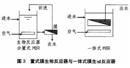 根据膜组件和生物反应器的组合方式,可将膜--生物反应器分为分置式、一体式以及复合式三种基本类型。(以下讨论的均为固液分离型膜--生物反应器)